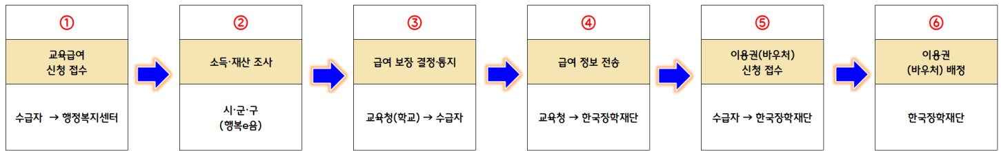 -. 신규 교육급여 수급자로 확정된 학생, 보호자는 한국장학재단 누리집에서 이용권 별도 신청