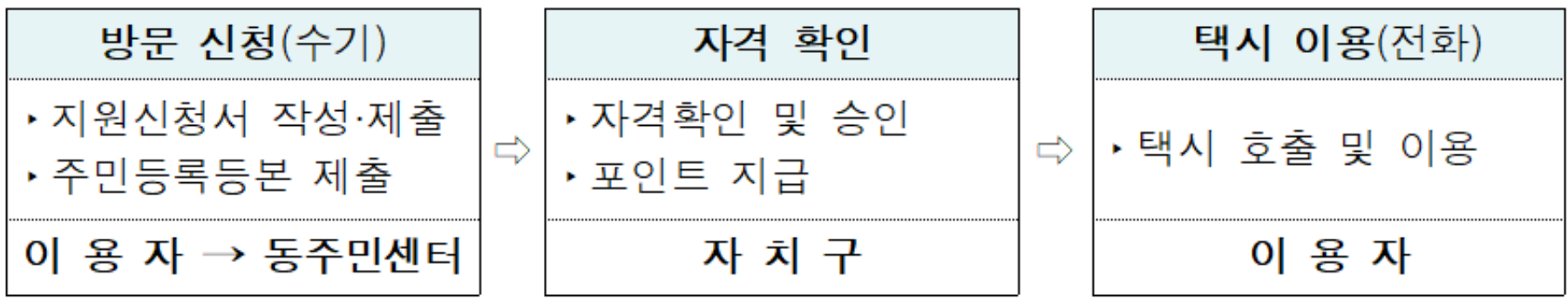 -. 신청 후 2주 이내에 거주지 자치구에서 자격을 확인 후 승인 되며, 영아 1인당 10만 원의 택시이용권 지급