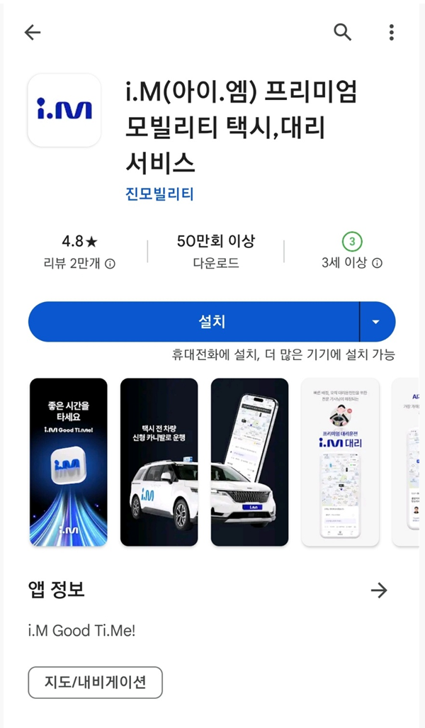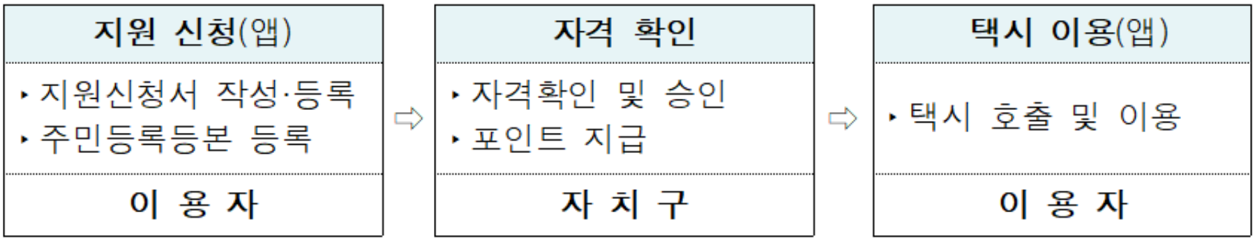 운영사 앱 아임.엠(iM)설치 → 아이.엠(iM) 회원 가입 → 서울엄마아빠택시 메뉴 → 자치구 자격 결정 → 승인 완료 시 서비스 이용 (계정내 포인트로 결재)