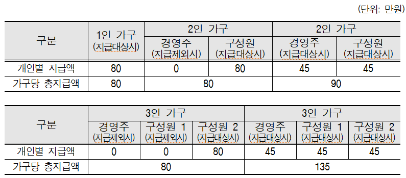 - 동일 가구(세대) 내 경영체 등록이 2개 이상 있더라도 지원내용(단가)은 균일하게 적용
